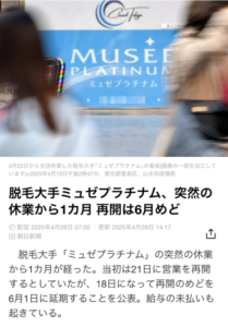 脱毛大手ミュゼで給与未払い続く 「家賃払えない」従業員から悲鳴