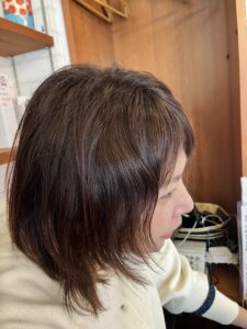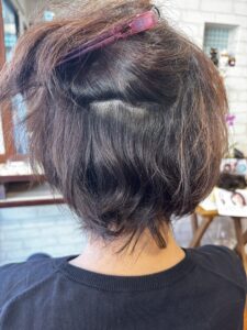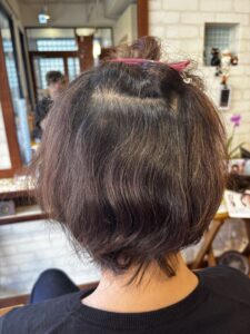 このくらいの長さから「クセを活かす」という感じになってくるのですが、スタイルはクセの状態によっても変わってきます。